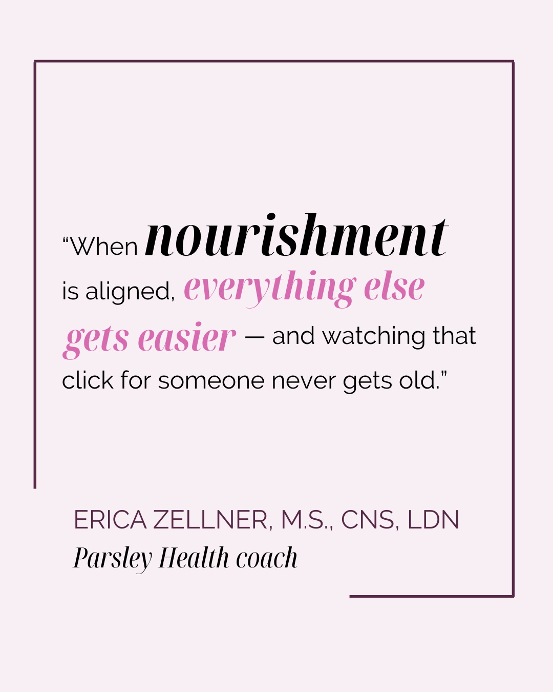 What I love most is helping people reconnect with their bodies and shift from “trying harder” to actually feeling supported. When nourishment is aligned, everything else gets easier — and watching that click for someone never gets old.